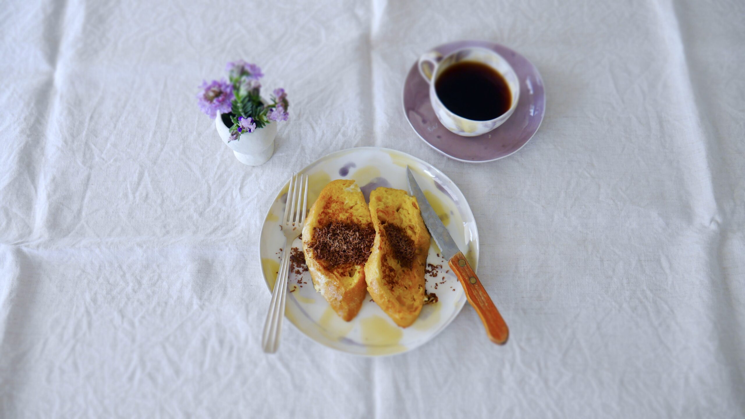 (フレンチトーストにチョコを削って盛り上げてみました^^)