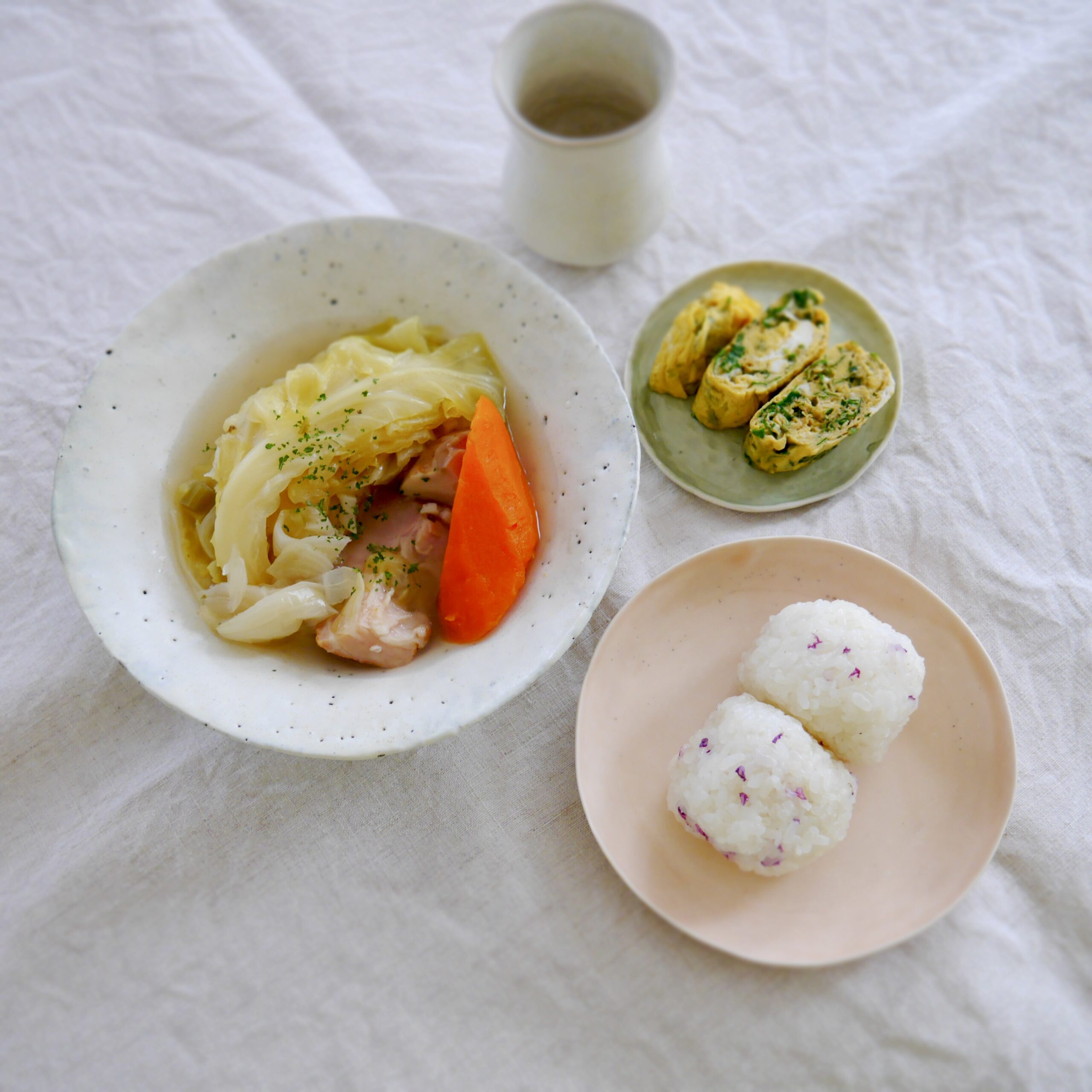 ポトフー、庭ミツバ入りだし巻き卵、