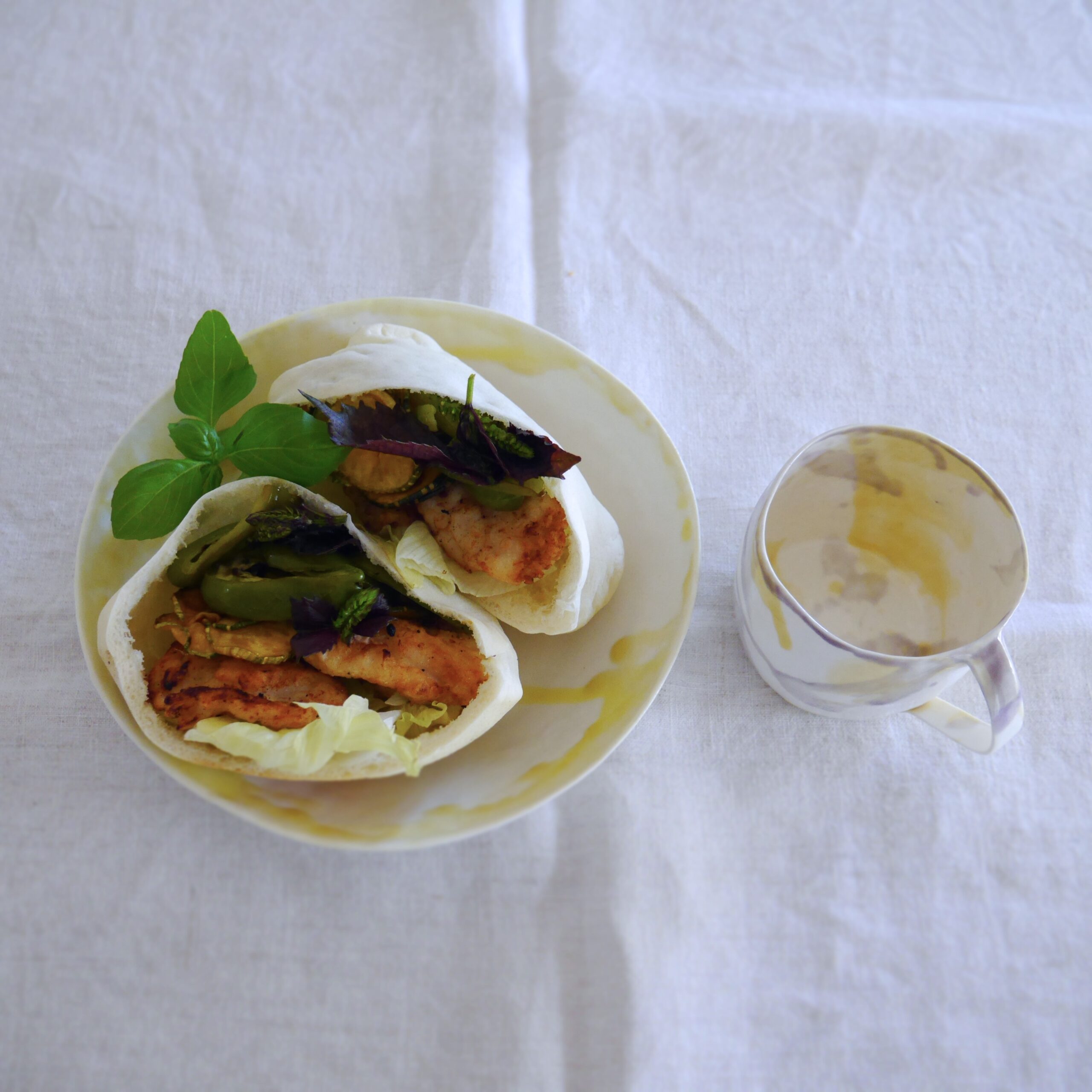 グリル野菜とフライドチキンのピタサンド